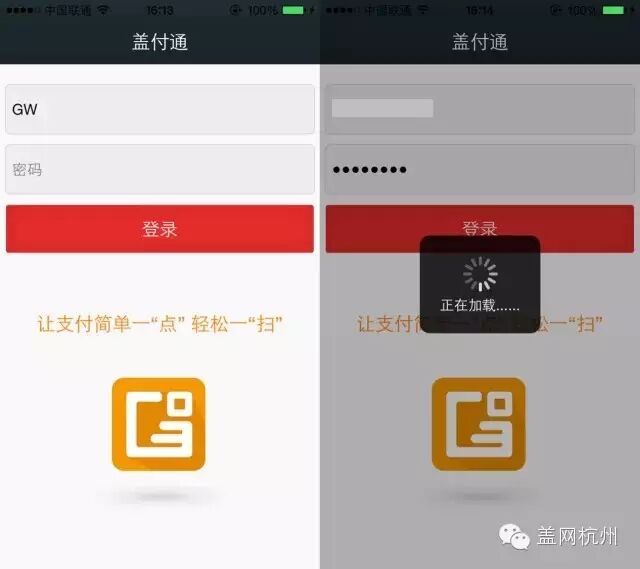 打开“盖付通”,输入「GW号」和「密码」,即可快速登录。