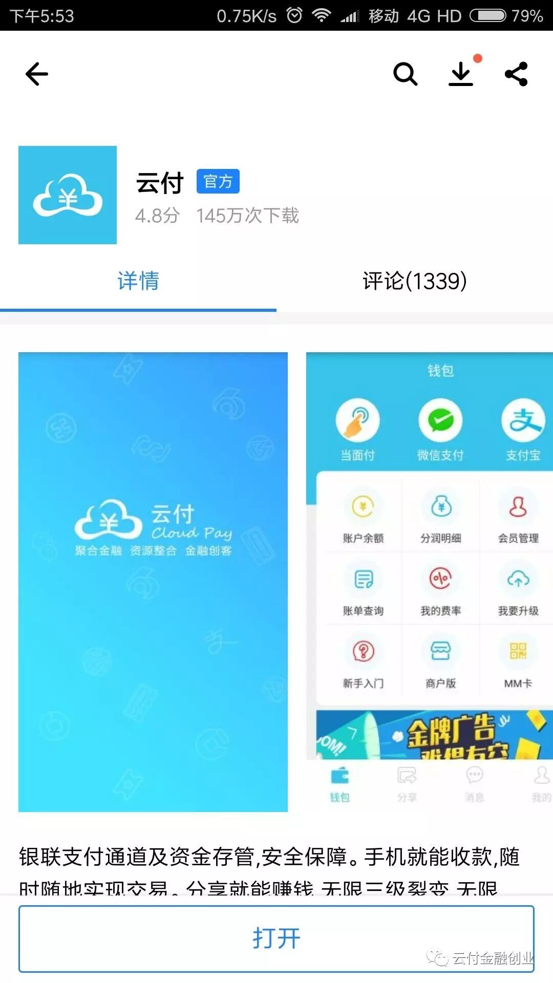 云付是一款商户扫码收款或个人刷卡的神器,云付网络POS机,云付是一个网络支付收款器,不需要实体机器,可以将信用额度变成现金到你卡内,招商,浦发,平安淘宝卡,农行、广发淘宝卡,中信网络卡,华夏卡走支付宝渠道还有积分。云付主要载体为一个APP,安卓和苹果客户端均可以使用一款商户扫码收款或个人刷卡的神器,云付网络POS机,云付是一个网络支付收款器,不需要实体机器,可以将信用额度变成现金到你卡内,招商,浦发,平安淘宝卡,农行、广发淘宝卡,中信网络卡,华夏卡走支付宝渠道还有积分。云付主要载体为一个APP,安卓和苹果客户端均可以使用!