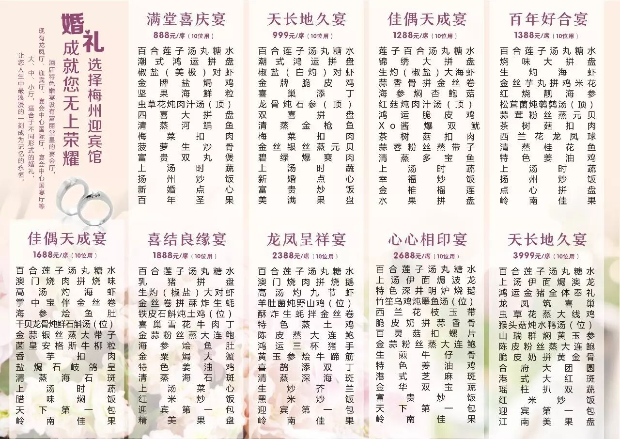备注:1、20席以上加送婚宴精美蛋糕1个;