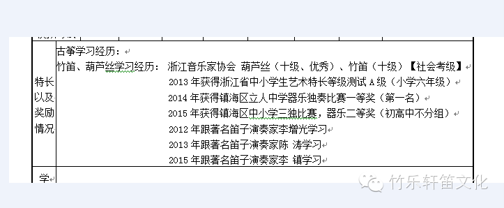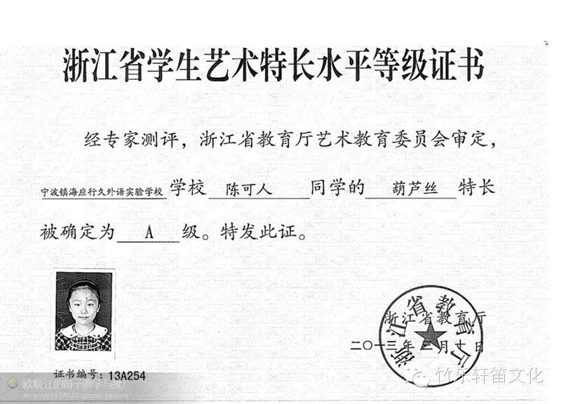 我带着四个宁波的孩子,参加象山的一个器乐比赛: 小学阶段能拿下这证书,浙江没几人!【没走捷径才是真得厉害】 细细得想来她为什么会如此出色?: 宁波著名笛子演奏家蔡祥云老师: 2012年见到她,她吹葫芦丝《月光下的凤尾竹》 2013年见到她,她吹《族舞曲》 2014年见到她,她吹《牧笛》 2015年见到她,她吹《早晨》 这是她跟我学习乐器(葫芦丝、竹笛)7年的成绩单: 宁波里这样优秀的竹笛、葫芦丝的学生不多,陈可人绝对算一个~~ 过去:1、学艺7年,基本风雨无阻,很少有请假。 2、乐感很好,能听老师的意见,家长配合。 3、乐意与指导老师沟通,喜欢老师的课堂。 总结:钱是小事,别花冤枉就好,孩子前程是大事,处处都要严谨。 2016年5月8号 我是竹乐轩笛文化:欧联江,欢迎与我互动中国笛文化: