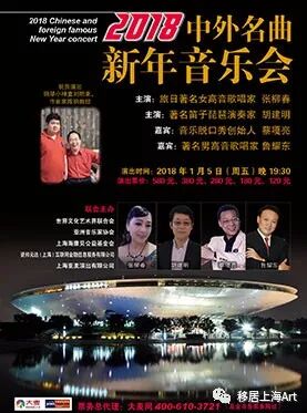 2018-中外名曲新年音乐会将向广大观众献上一台新颖独特、激动人心、令人难以忘怀、大气高雅的艺术盛宴!届时将由旅日著名女高音歌唱家张柳春,中国著名笛子、琵琶演奏家胡建明主演,特邀嘉宾、著名音乐脱口秀蔡嘎亮,著名男高音歌唱家(主持人)鲁耀东,以及特别邀请中国著名作曲家、上海音乐学院教授陈钢,中国雨人“钢琴小神童”刘明康组成的强大阵容、于2018年1月5日在上海梅赛德斯-奔驰文化中心隆重献演!2018-中外名曲新年音乐会将向来自国内外的朋友和广大艺术爱好者打开了艺术与观众紧密相结合的最新景观,在这里、您将领略到艺术家们最精彩的演出和享受到高标准的服务与高雅舒适的环境以及经过特殊配置的舞美、 音响、灯光的最 佳现场效果,让各位来宾 仿佛真正的来到了奥地利维也纳“金色大厅”,并全身心地沉浸在美妙和热烈的氛围之中,让您的精神得到赏心悦目的享受,在这里、您能找到友谊和朋友, 体会到艺术和您至高无上的存在。