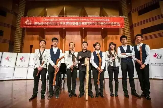 图为:刘畅老师指导的成都华德福学校七位高中生组建的“柒音木笛乐队”获得中新国际音乐比赛新加坡决赛第一名。