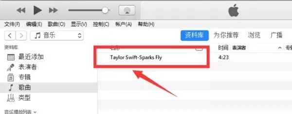 我们再回到iTunes,发现这首歌已经完成了自动添加到了这里。