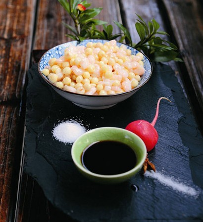 另一道鸡头米炒虾仁,选用太湖特产鸡头米和淀山湖河虾仁,清香宜人,鲜嫩爽口。这家农家乐订位火爆,据说预订已经排到好几个月之后。