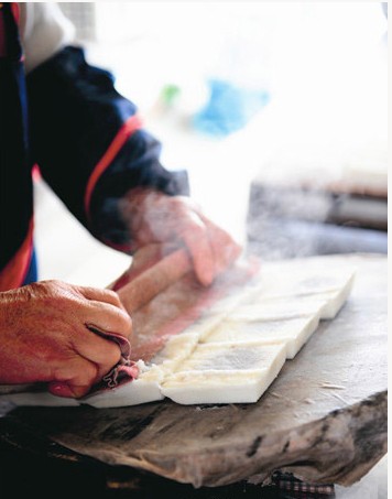 端午节的时候自然要吃胖阿姨的“大肉满堂粽”了。胖阿姨的粽子讲究三新:新糯米、新棕叶、新稻草。包粽子的时候一定要放两块肉,一肥一瘦;粽叶绝对不上色素,以清水漂洗干净,至少包四张,巧妙裹住糯米,煮的时候才不会因为进水而把米泡烂。
