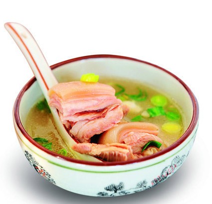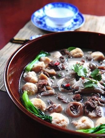 这道菜被公认为“酥软鲜醇、富有营养、原汁原味、细腻香醇、口感软糟,为浦江一绝”。除了羊肉,羊的心、肝、肚、肺,还有充满胶质的羊蹄、性平味甘的新鲜羊血,都随羊肉、羊汤同时上桌,均可“两吃”。