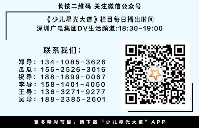 少儿星光大道APP专家团队评选前50名优秀选手,可选送深圳电视台DV频道《少儿星光大道》栏目进行播放。
