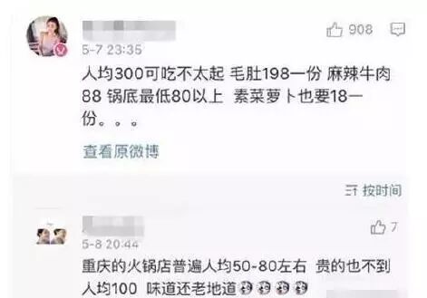 还有网友指出重庆火锅人均50-80,人均300元真的让人吃不起。