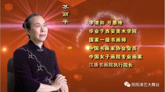 中国画院一级国画师。世界画坛顶尖女画家,"苏丽平"教授,为感谢无锡人民的厚爱,在阳阳演艺大舞台。现场呈现巨作。