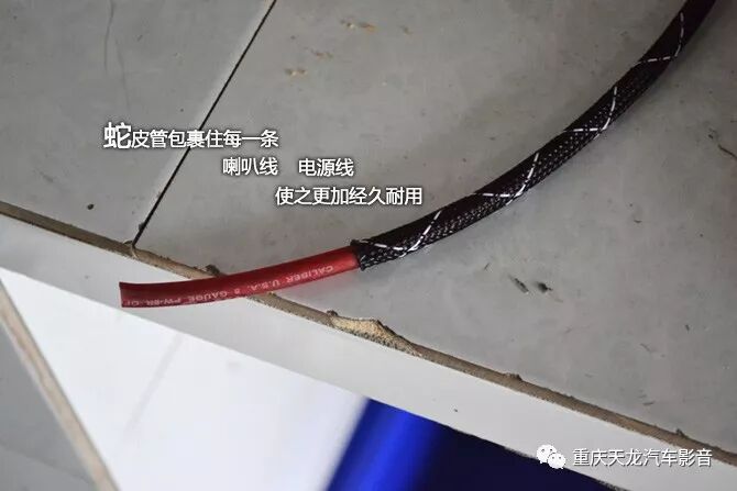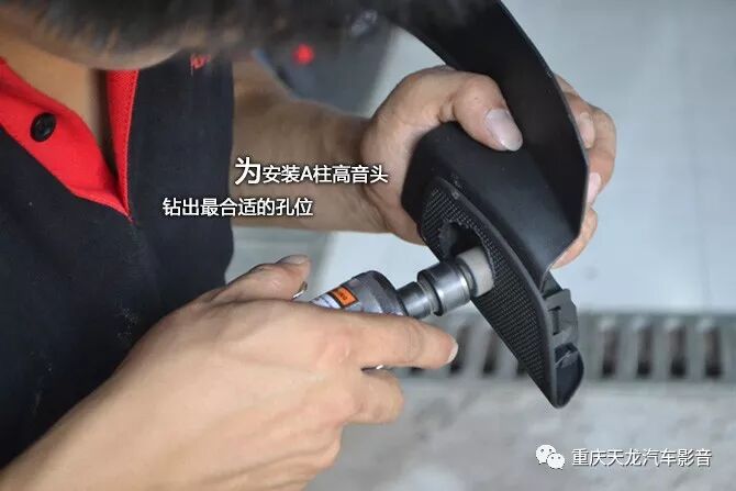 所有的线路连接点都使用焊接的方式,最大的保证喇叭的使用寿命,虽然套好了热缩管,我们还是要使用老办法,电工胶带包扎好,双保险嘛。每一个喇叭线和电源线均使用蛇皮管包裹好,此举的作用是为了提高线材的抗热、抗腐蚀、抗磨损性HSK163.4分频器的连接点均使用专用本店装用的分频器连接头为了防止水滴入喇叭上造成潮湿、短路,我们在喇叭上装上防水套原车高音位有预留的高音位就不必倒模了,但是与HSK165的高音大小不不合,所以我们钻出最合适的孔位