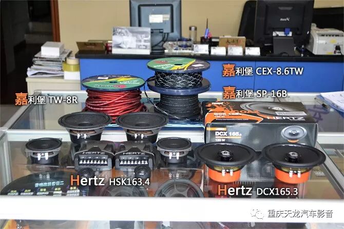 此次改装的所需的材料,由于客户后来客户打算安装两分频套餐所以HSK163.4改为HSK165HCP4D功放,D类超大1140W峰值功率,良好的散热系统,人性化的各种调节设计