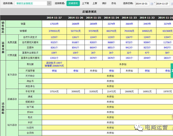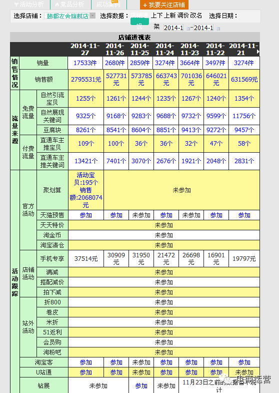 熟悉直通车后台的朋友,都知道直通车流量来源分为站内/站外,按类型分为关键词/定向投放,无线端也一样。无线直通车的位置划分如下 以及用淘宝知己知彼软件查出的该店铺的营销关键词以及销量情况