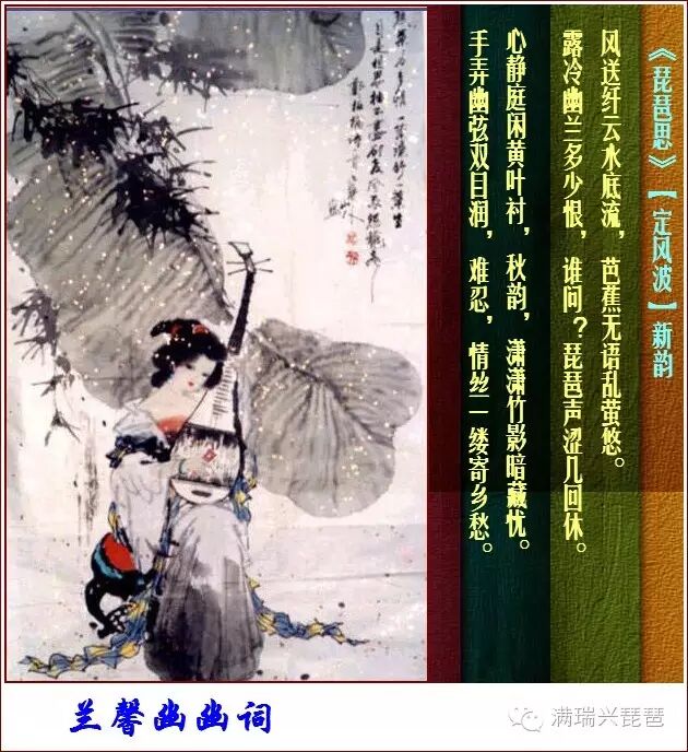 中國第一部正式出版的琵琶曲集。清代華秋蘋編訂,故又稱《華秋蘋琵琶譜》,簡稱《華氏譜》。共3卷,收錄了南、北兩派琵琶小曲62首 ,大曲6套 ,于嘉慶二十三年(1818)刊行。上卷收錄王君錫的傳譜,有文板5首,武板7首,雜板《普庵咒》1首,大曲《十面》1首。中、下卷收錄浙江陳牧夫的傳譜。中卷有《思春》、《昭君怨》等文板18首,《步步高》、《巧梳妝》等武板12首,《春光好》、《鳳銜珠》等隨手八板5首 ,《倒垂蓮》、《小月兒高》等雜板14首。下卷有《將軍令》、《霸王卸甲》、《海青拿鶴》、《月兒高》和《普庵咒》等大曲5首 。華氏編訂時不加增改,忠實于舊譜,並參照琴的減字譜法,擬訂了比較完整的琵琶指法譜字,對琵琶的定弦、把位、指法等加以規範化,對優秀琵琶曲的保存和流傳有很大貢獻。 琵琶在隋唐(581——618)之前,是對抱彈撥器的統稱,向前彈出稱琵,向後挑進稱琶。今天的曲項琵琶起源于波斯,約公元六世紀中葉時傳人中國長江中下遊地區,並由唐代的木撥彈奏,逐漸改良爲手指彈奏,具有豐富的表現色彩和高難度的演奏技巧。