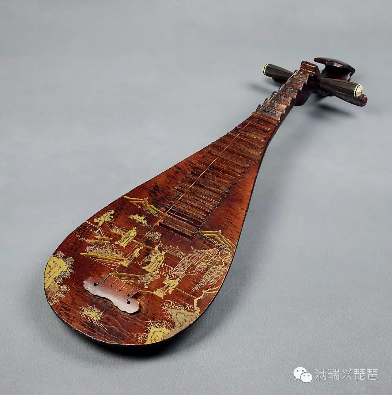 东晋时由西域传入的曲项琵琶,历经唐宋时期的改革与融合,宋代以后其梨形音箱、四弦十四柱的形制基本确定下来。 曲项琵琶 唐代琵琶艺术已获高度发展。明清时期的琵琶分为南北两派,目前存见的琵琶古谱除少量唐存乐谱外,大多为清中叶以后南方各派琵琶传谱: