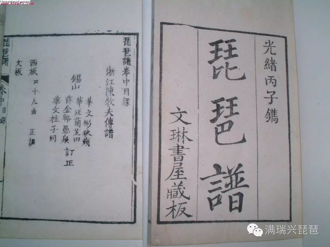 《瀛州古调》,沈肇州编辑(公元1916年) 《养正轩琵琶谱》,沈浩初编辑(公元1926年)