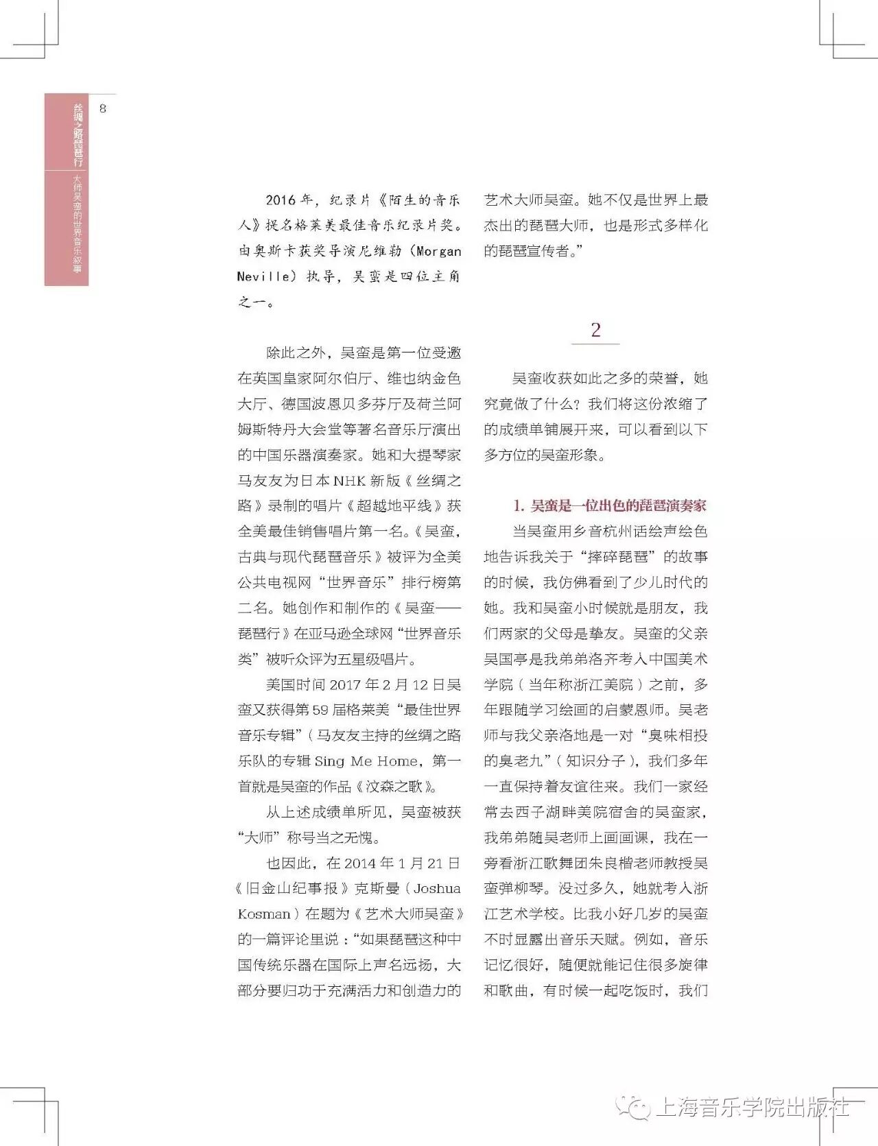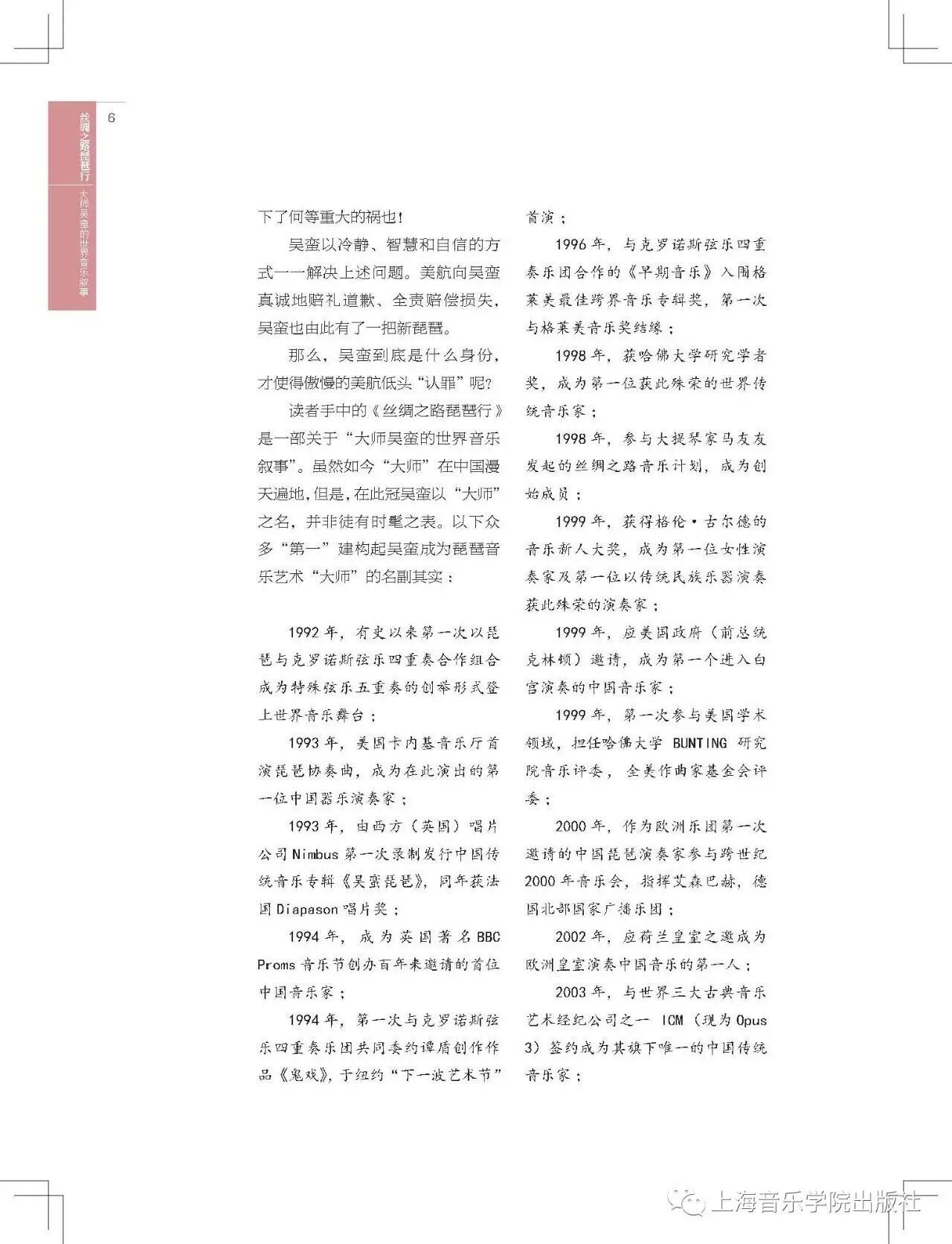 本书由上海音乐学院出版社出版,随着大师吴蛮在世界各国的精彩演出,这本书将成为文化艺术和音乐领域引人瞩目的重量级作品。