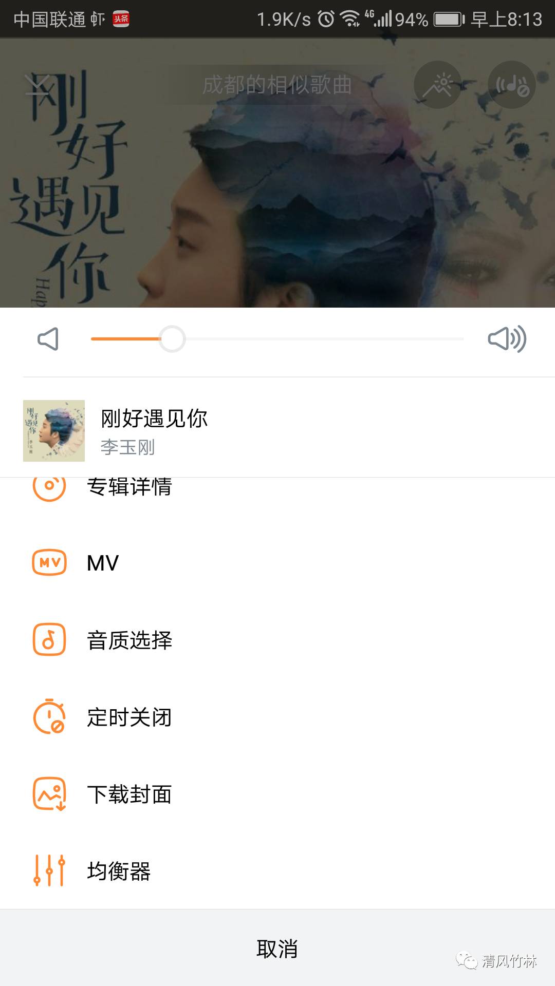 在…更多选项里面,增加了很多进阶功能,如加到歌单,点歌,歌词海报,艺人,专辑,MV,音质选择,定时关闭,下载封面,均衡器等功能,相比而言这一块各家都可以把一些不常用的功能加进去,从操作方式来看,QQ音乐展示的功能更多更直观,并且右侧特意留出一半,提示右边还有内容,用户体验不错。