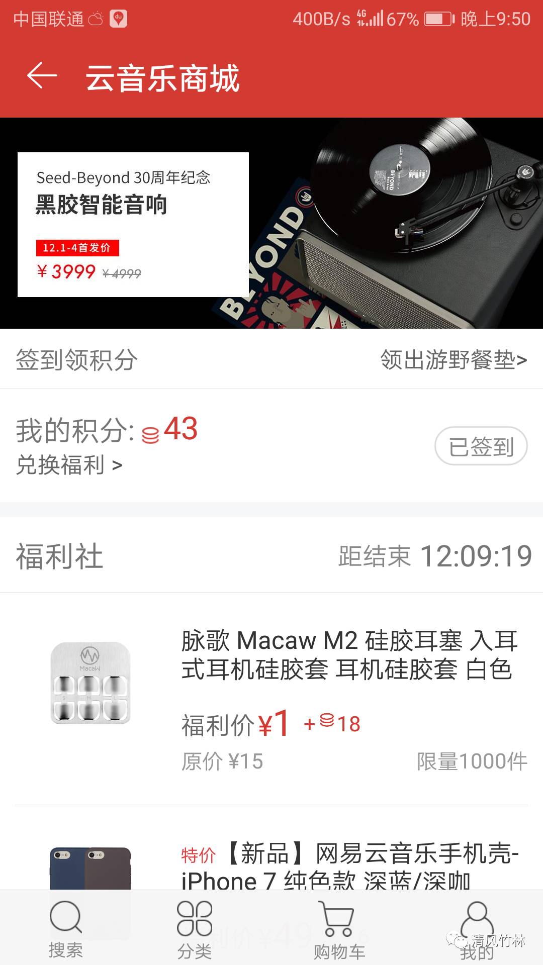 第三种就是各种硬件周边的销售,这一点网易直接办了云商城,虾米在不起眼的位置推荐车载蓝牙播放器,QQ倒是很干净,没有增加硬件销售的广告,大家可以感受一下。