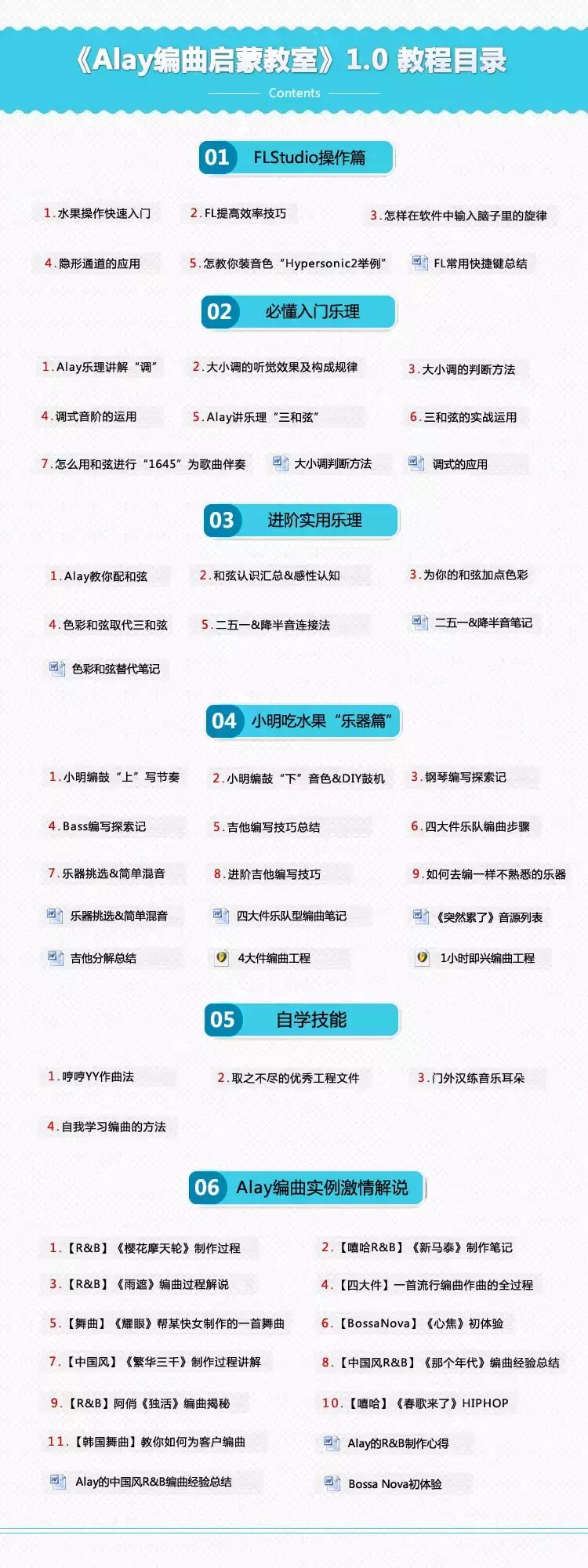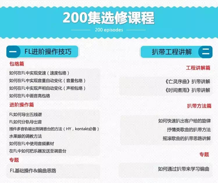 包含:《Alay编曲启蒙教室1.0》教程一套+《Alay编曲启蒙教室2.0抢先版》教程一份+200集选修教程+在线30天上课培训+1个月进阶课程培训+专属助教小课+内部软件音源+终身复修