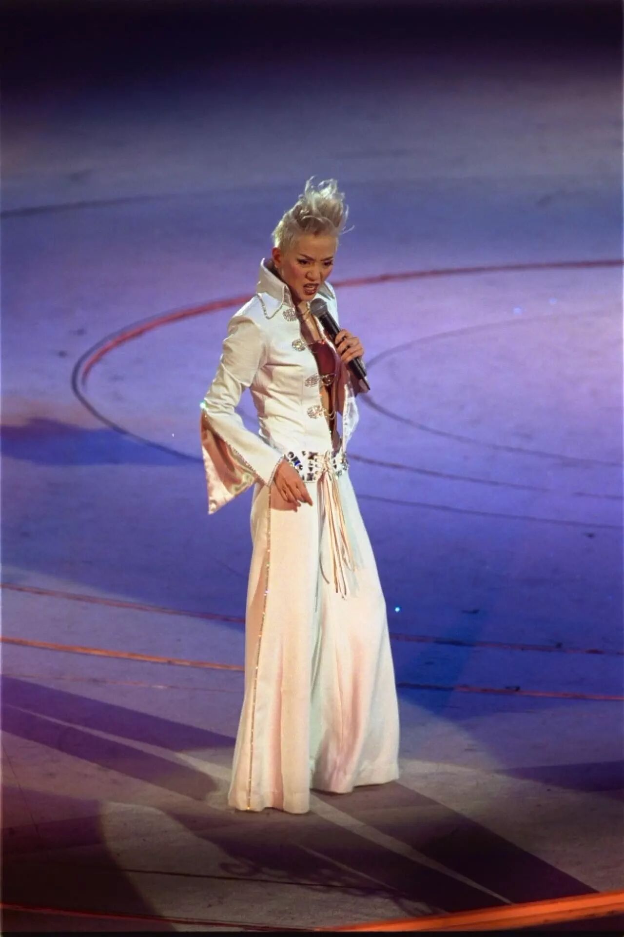 褪去华丽美艳的造型,她用最后一分力唱出自己对音乐的爱,和对歌迷的感谢。(网上图片)