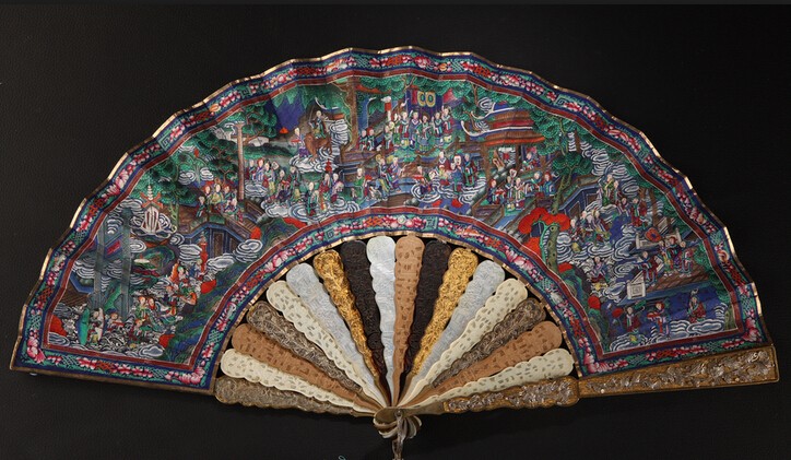 展览撷取深圳藏家陈祥胜藏十七世纪中叶至十九世纪由广州制作出口的各类精品扇具八十二件套。象牙、玳瑁、掐丝珐琅、刺绣、堆绫等各式珍贵材料、独特工艺汇聚一堂,可谓珍品荟萃。它们在述说艺术的同时,也带领我们走近广州对外贸易的辉煌时期。