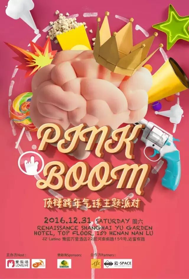 想找一个疯狂自拍圣地?想换个新姿势跨年?想被粉色环绕深陷?那就来「PINK BOOM」打开脑洞!这场趴踢的主题元素是粉色&气球,喜爱粉色不只是少女心,你更可以成为内涵女王,“女生心跳·男生害臊”。在我们打造的复古蒸汽波梦幻大趴中,释放你奔放热情爱玩的真性情!