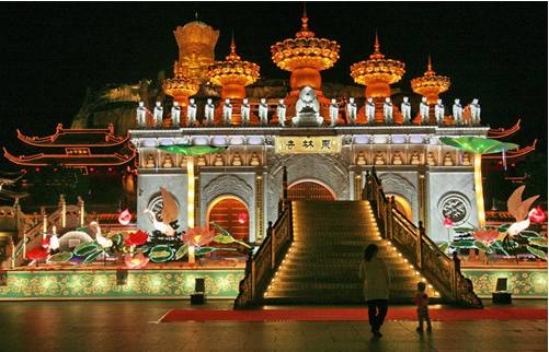 花灯,是朱泾镇的独特的民间艺术品,在元旦祈福之夜,放在东林寺景区的规划区域,进行点缀,供游客们祈福观赏,摄影留念。