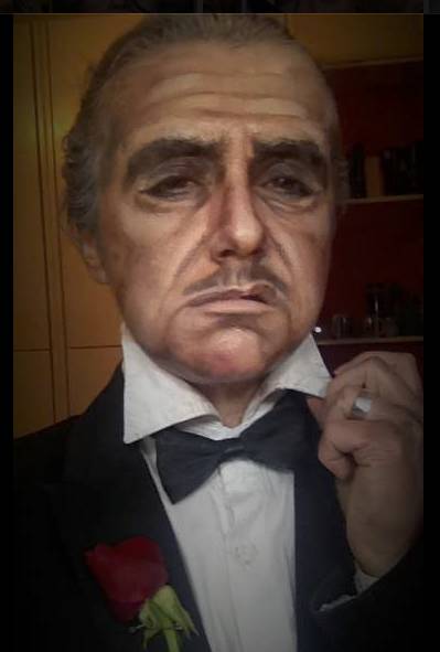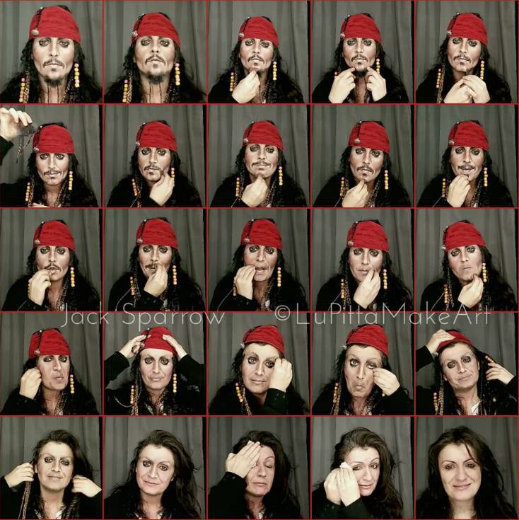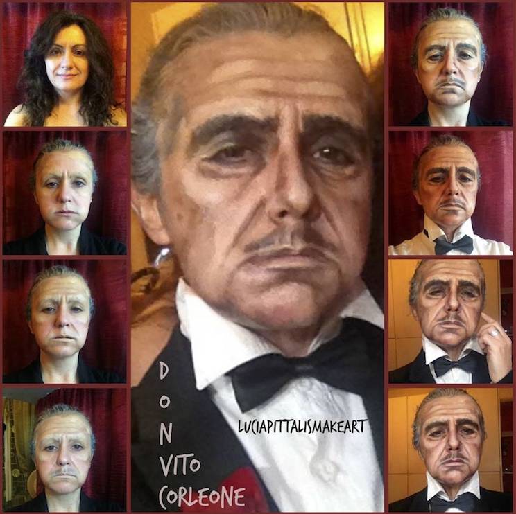 意大利肖像画家露西亚-皮塔利斯(Lucia Pittalis)是一名技艺高超的易容大师——她能用化妆术为自己“改头换面”,变成完全不同的人。她技艺惊人,在自己脸上完成的作品惟妙惟肖,有趣的是她显然对欧美老牌电影男星和摇滚明星情有独钟,最喜欢效仿这些老男人的样子在自己脸上重塑他们的经典形象。