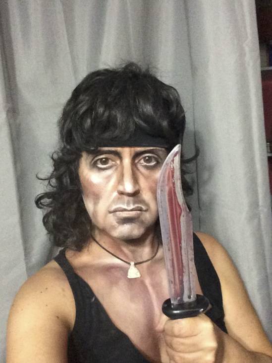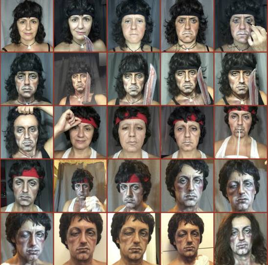 一名长相不错的妹子,却喜欢把自己化装成老男人,而且化妆技艺惊人。史泰龙也是她喜欢的影星,露西亚妆扮成电影《兰博》里史泰龙的样子。对比图看起来简直不可思议。注意完成后的作品上史泰龙有画出来的胸肌,让人难以看出破绽——意大利女化妆师露西亚·皮塔利斯就这样火了。她在自己脸上完成的作品是如此的惟妙惟肖,以致网友惊呼影视巨星永不陨落。