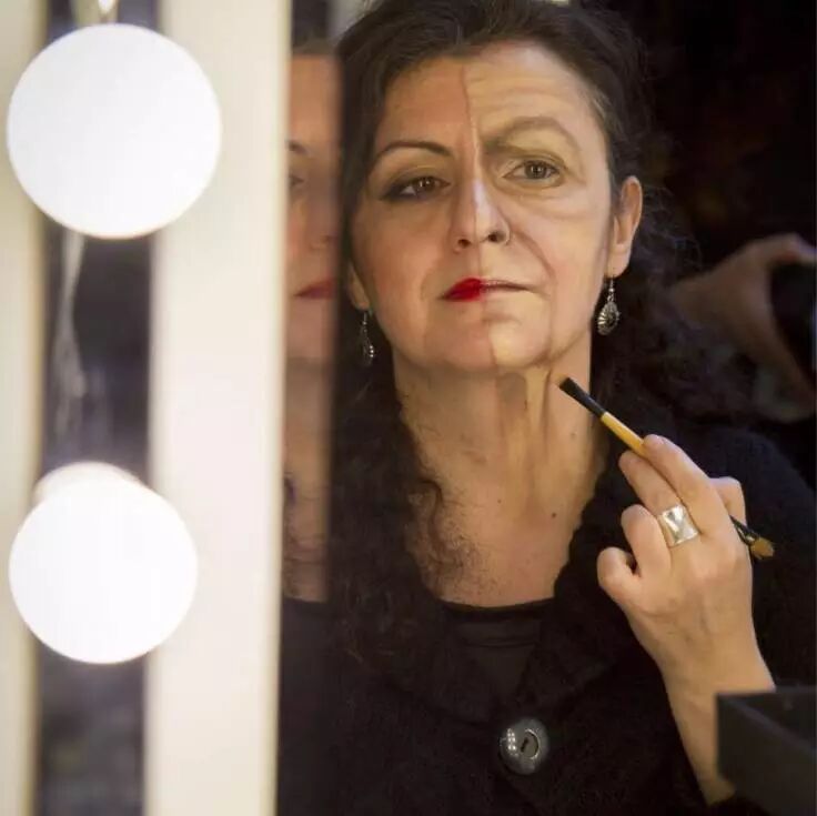 图中她把自己化成上世纪初出生的美国百老汇女星贝蒂-戴维斯年老时的样子。为什么露西亚不把自己扮成贝蒂-戴维斯年轻时的样子呢?