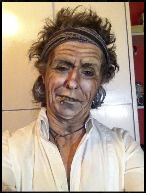 露西亚扮成滚石乐队成员基斯-理查兹。也许露西亚热衷化身成为老男人是因为她有特别的画褶子技巧,图中她连基斯-理查兹脖子上的褶子也没放过,一一重现。