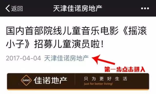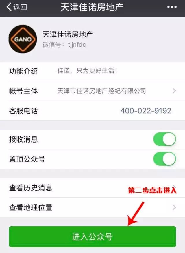 将文章滑到顶部,点击蓝色文字“天津佳诺房地产”进入