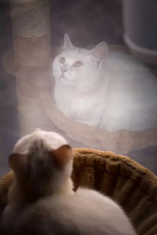 宠物们有一间的专属房间,里面有三只猫咪。白色的是高冷的波波,两只花猫分别是大宝和小宝,它们一点都不怕生,躲在自己的小窝里假寐,还有一只超级乖的狗狗叫虎虎。