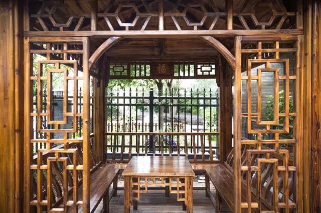 花园、凉亭、竹园,处处透着古色古香的雅致,一楼并不是死板的封闭式的设计。