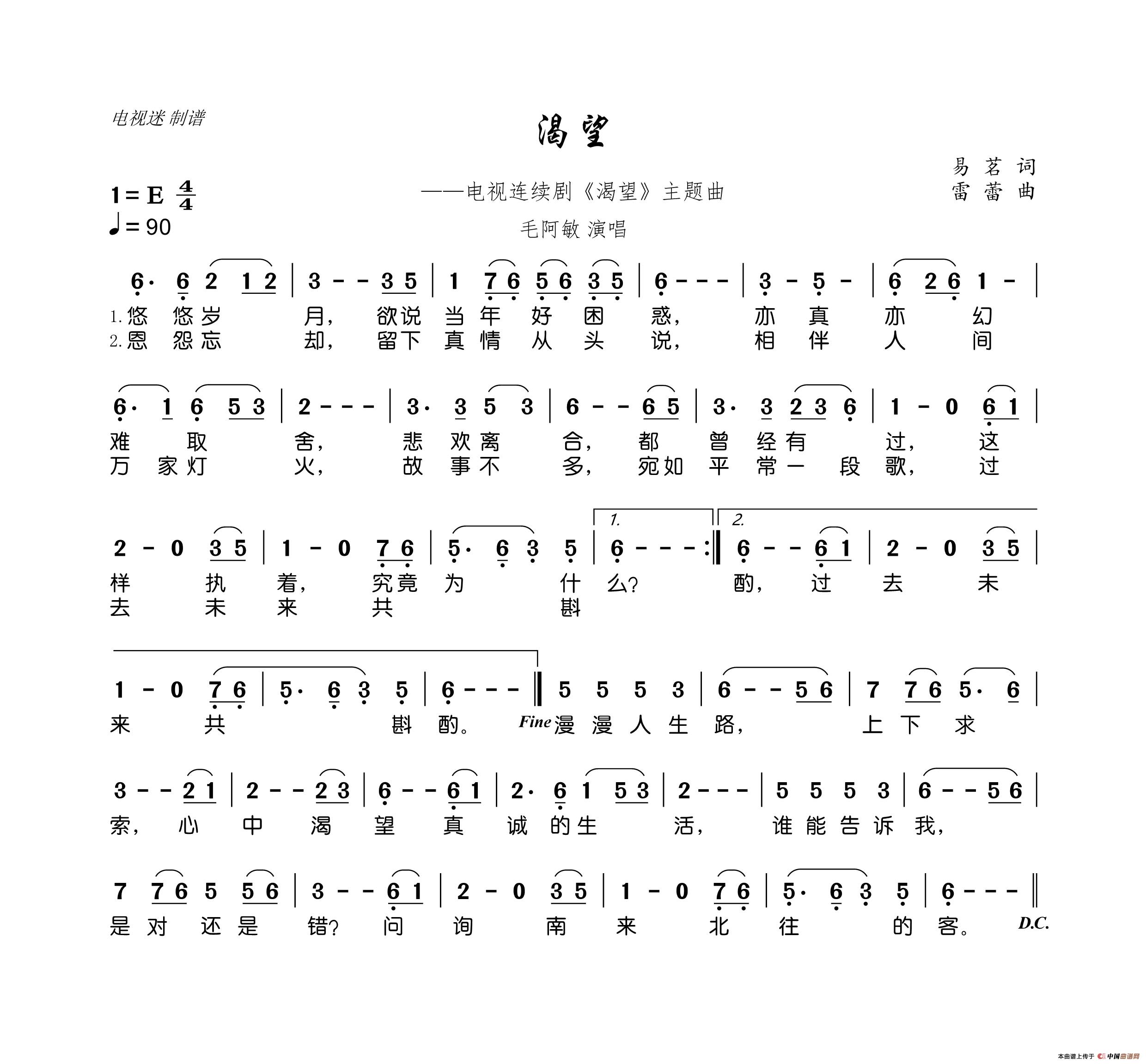 《渴望》出自一部著名的电视剧《渴望》主题曲,由毛阿敏演唱。作词:易茗,作曲:雷蕾