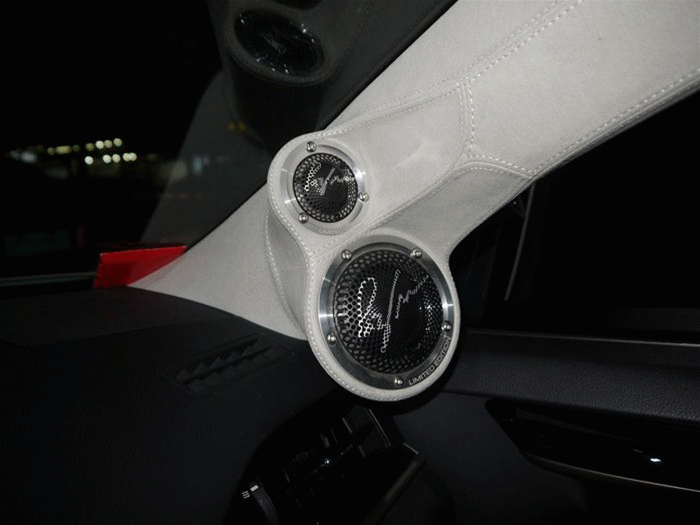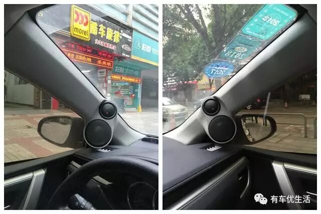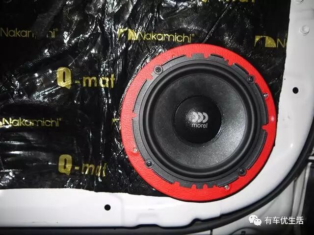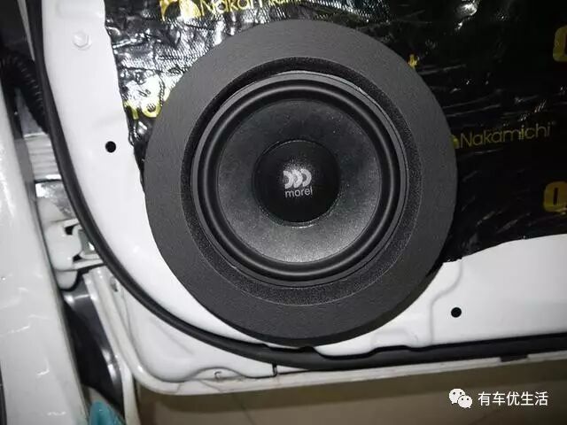 前声场喇叭升级为三分频的摩雷优特声603,摩雷汽车喇叭专注汽车音响40多个年头,表现自然真实的音乐。中低音安装在门板原装位,而高音和中音为了更好的声场环境,以及和中低音更好的衔接,倒模在A柱上。