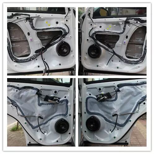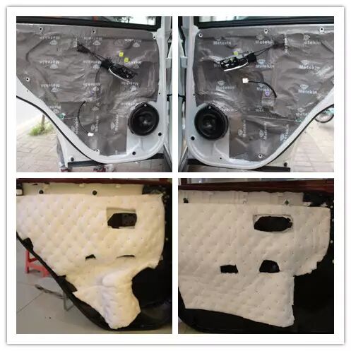 采用美特静隔音减振垫给车门外层进行减震处理,再进行密封,让车门形成一个扎实箱体,雷同于车门就是一个音箱一般,再在上这个基础上加上一层吸音棉,达到最佳的隔音效果。