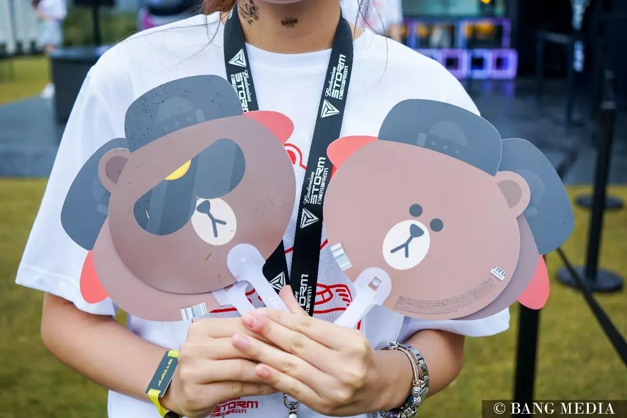 你以为这样就结束了吗?No,no,no. LINE FRIENDS展台特意为大家准备了最新的Beat Brown系列扇子免费派送!感觉用这扇子扇出来的风都是酷酷的呢!