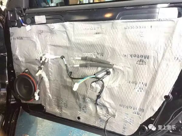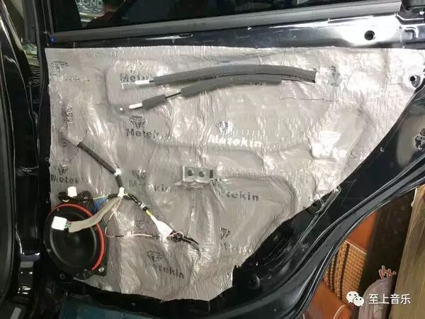 升级音响自然也得升级隔音,车门进行两板一棉三层美特静环保隔音施工,隔绝噪音,还能提升车门喇叭的音响效果,所以升级隔音也是势在必行。