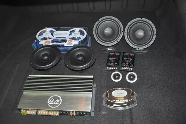 本次音响系统采用原车主机进入歌剧世家HTL 460高转低,前声场喇叭选用歌剧世家VS265两分频套装, 后声场用歌剧世家IS165同轴喇叭进行补音, 用AP C40功放推动前后声场。