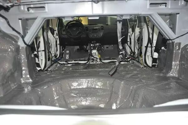 四门隔音:隔音材料施工必须整张粘贴在车门上,让车门可以形成一个箱体,提供给车门内的喇叭一个良好的工作环境,音质也有效的得到提升。