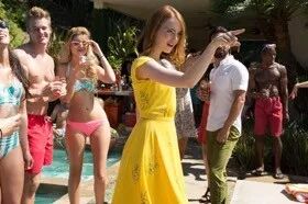 其次,当然是歌。奥斯卡最佳原声、最佳歌曲,瑞恩·高斯林孤独地漫步在码头吹的那首“City Of Stars”,只停留在耳机里更是可惜。要知道我曾在某年的上海国际电影节看过一部由克里斯蒂娜主演的歌舞片《滑稽戏》,偏流行的百老汇歌曲在影院里都让人欲罢不能,就更别说结合了大量古典和爵士、层次丰富的《爱乐之城》配乐了。