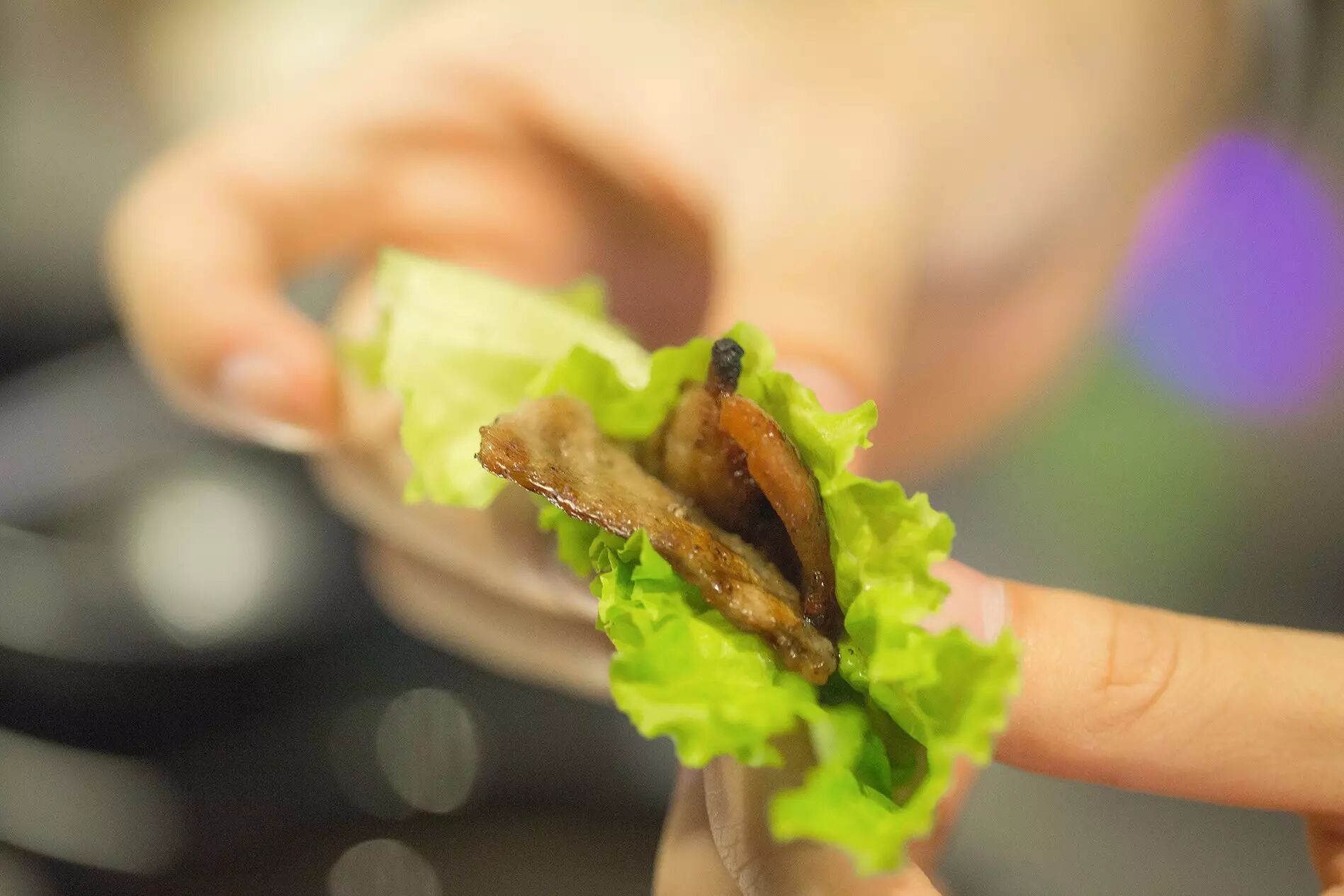 ▲记得用生菜包着烤肉吃,更韩式的吃法,哈哈哈