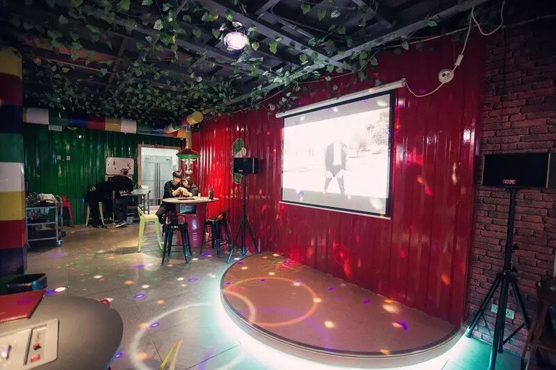 餐厅中间的投影幕时常放着韩国偶像团队的劲舞视频