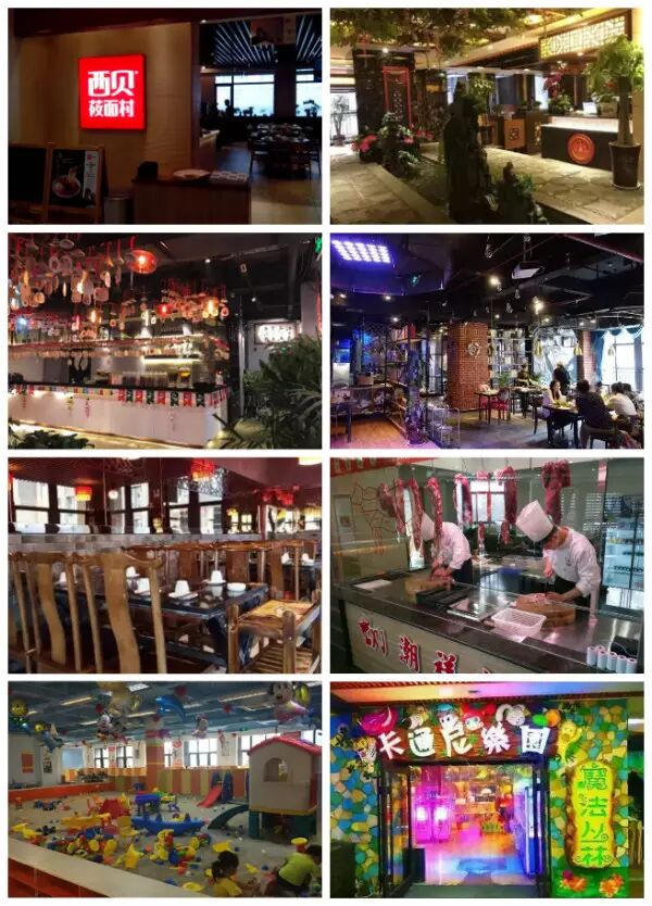 西渡麻辣香锅、沙县小吃、U鼎冒菜、香麦居、王华峰肉夹馍、阿婆记米线、仟百味骨头饭、关中老碗面、老李家黄焖鸡、味亨骨汤冒菜、金三顺紫菜包饭、米卷屋紫菜包饭、西岸人文咖啡、一诺眼镜、老豆达人、品虾客、宾朋牛肉面、常忆家饺子馆,卡丝尼理发店、0423书吧。