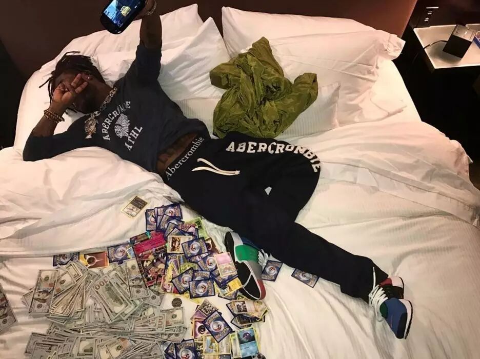 Instagram拥有170万粉丝的费城说唱明星Lil Uzi Vert前两周就发了一张照片,他躺在酒店的床上、上面放着最近很火的Pokemon卡片还有一堆现金,嗯,典型的Hip-Hop风格。他穿着一双Nike x Beams的Air Presto,嗯,挺有趣的。还有一身全套的Abercrombie & Fitch。