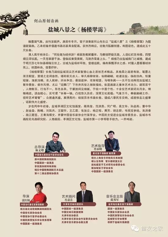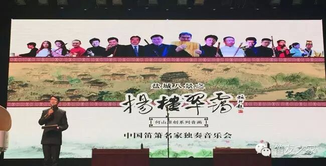 【笛友之家讯】:(记者 刘墨)为丰富盐城“十三五“时期艺术创作宝库,打造文化名片、推介城市形象增光添彩。由中国音乐家协会竹笛学会、联合促进会盐城市委员会、亭湖区委宣传部、亭湖区文广新局主办——推介盐城文化名片:何山原创音画作品《杨楼翠霭》中国笛箫名家独奏音乐会于4月23日晚在亭湖区文化艺术中心上演。