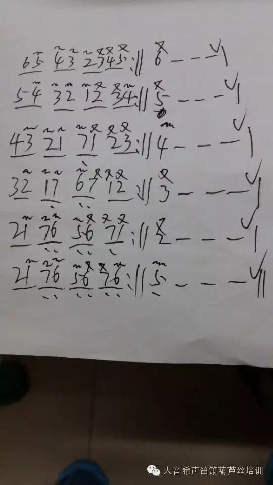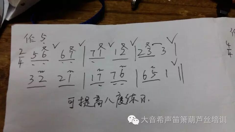 叠音在旋律中进行的规律是:不管是高音转换到低音,还是低音转换到高音,手指活动的方向如果是往膜孔的方向进行时,都可以用叠音技巧,如果是往笛尾的方向,那就要用波音或者颤音啦!那么我们要通过怎样的训练才能做到在乐曲当中运用自如呢!下面的一首练习希望能帮到大家(如图)