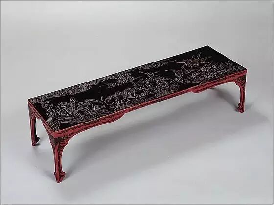 琉球漆器主要以朱色和黑色的漆为底色,红色更采用猪血打底,所以朱色十分鲜明亮泽,被称为“豚血下地”,其美感非其他漆器可媲美。