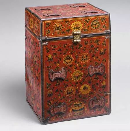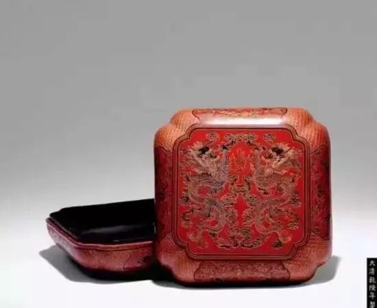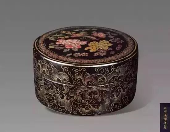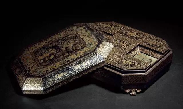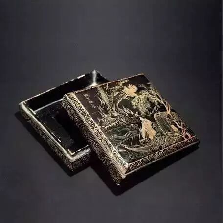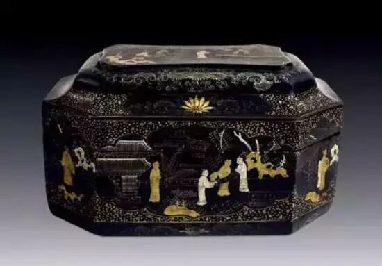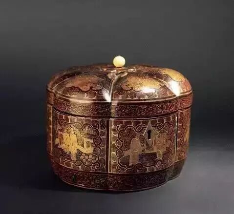 明嘉靖 戗金填彩漆龙凤纹元宝形盒